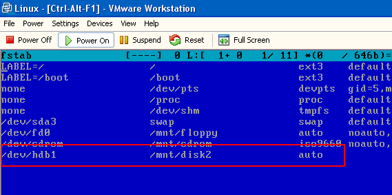 В прошлом шаге мы С вами научились монтировать реальный диск. Каждый раз когда нам нужно будет запускать Lunix нам придется монтировать файловую систему. Кончено это не совсем то, что нужно. Хочется что бы она монтировалась автоматически. И это можно сделать. В папке etc есть файл fstab, там перечислены монтируемые устройства.