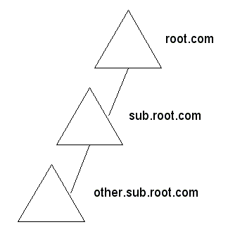 Доменное дерево можно также схематически изобразить с помощью пространства имен. Уникальное имя объекта можно определить, двигаясь вверх по доменному дереву, начиная с объекта. Такой метод оказывается удобным при объединении объектов в логическую иерархическую структуру. Главное достоинство непрерывного пространства имен состоит в том, что глубокий поиск, проводимый от корня дерева, позволяет просмотреть все иерархические уровни пространства имен.