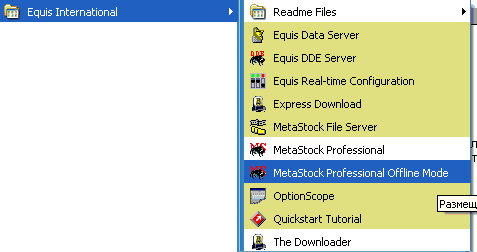 Программа MetaStock фирмы Equis International - одна из наиболее популярных во всем мире программ для технического анализа финансовых данных. Если она у Вас есть, Вы ее найдете через меню Пуск, если нет, то где возьмете не знаю, говорят нужно покупать.