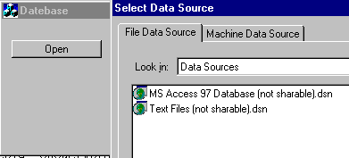 Как видите все параметры кроме первого не устанавливать. Первый параметр lpszDSN указывает на имя DNS для связи с источником данных. Эти имена находятся в настройке ODBC в панели управления на вкладке File DNS. Это имя можно установить в NULL, и тогда при выполнении программы Вам предложат выбрать источник. Данная ситуация изображена на рисунке ниже: